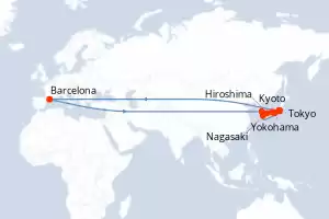 Itinerario : Barcelona, Kyoto, Tokyo, Yokohama, Toba, Osaka, Hiroshima, Kanmon Straits, Busan, Nagasaki, Shimizu, Tokyo, Yokohama, Barcelona