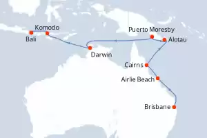 Itinerario : Brisbane, Airlie Beach, Cairns, Alotau, Puerto Moresby, Darwin, Komodo, Bali