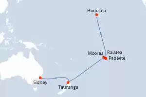 Itinerario : Honolulu, Papeete, Moorea, Raiatea, date, Tauranga, Sidney