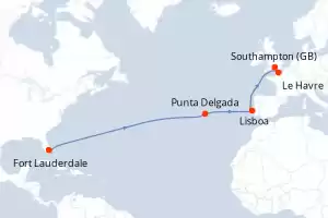 Itinerario : Fort Lauderdale, Punta Delgada, Lisboa, Le Havre, Southampton
