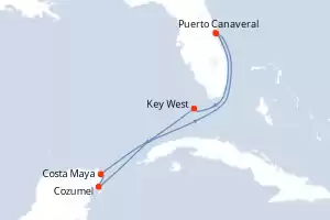 Itinerario : Puerto Canaveral, Costa Maya, Cozumel, Key West, Puerto Canaveral