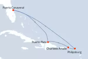 Itinerario : Puerto Canaveral, Puerto Plata, Charlotte Amalie, Philipsburg, Puerto Canaveral