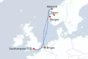 Itinerario : Southampton, Flaam, Alesund, Bergen, Brujas, Southampton