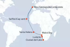 Itinerario : Ciudad del Cabo, Luderitz, Walvis Bay, Santa Helena, Vigo / Santiago de Compostela, Sal Rei (Cap vert)