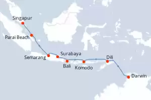 Itinerario : Singapur, Parai Beach, Semarang, Surabaya, Bali, Komodo, Dili, Darwin