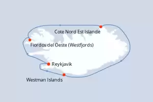 Itinerario : Reykjavik, Oeste de Groenlandia, Estrecho de Dina, Reykjavik
