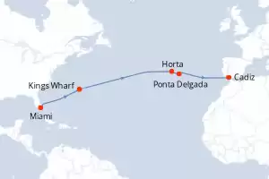 Itinerario : Miami, Kings Wharf, Horta , Ponta Delgada , Cadiz