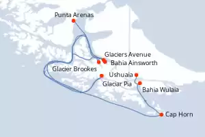 Itinerario : Punta Arenas, Bahia Ainsworth, Glacier Brookes, Bahia Ainsworth, Glacier Brookes, Bahia Ainsworth, Glacier Brookes, Bahia Ainsworth, Glacier Brookes, Bahia Ainsworth, Glacier Brookes, Bahia Ainsworth, Glacier Brookes, Bahia Ainsworth, Glacier Brookes, Bahia Ainsworth, Glacier Brookes, Bahia Ainsworth, Glacier Brookes, Bahia Ainsworth, Glacier Brookes, Glaciar Pia, Glaciers Avenue, Glaciar Pia, Glaciers Avenue, Glaciar Pia, Glaciers Avenue, Glaciar Pia, Glaciers Avenue, Glaciar Pia, Glaciers Avenue, Glaciar Pia, Glaciers Avenue, Glaciar Pia, Glaciers Avenue, Cap Horn, Bahia Wulaia, Cap Horn, Bahia Wulaia, Cap Horn, Bahia Wulaia, Ushuaia