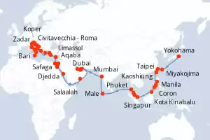 Israel, Reino Unido, Italia, Turquía, Antigua y Barbuda, Suecia, Marruecos, Letonia, Islandia, España, Grecia, Bélgica, Paises Bajos, Francia, Malta, Groenlandia, Noruega, Portugal, Alemania, Egipto, Itinerario : Nueva York, Halifax, Saint John's, Punta Delgada, Funchal, Santa Cruz de Tenerife, Arrecife, Agadir, Casablanca, Lisboa, Oporto, La Coruña, Gijón, Bilbao, Burdeos, La Rochelle, St Helier, Le Havre, Dunkerque, Tilbury, Zeebrugge, Ijmuiden, Bremerhaven, Kristiansand, Oslo, Lysekil, Skagen, Gothenburg, Copenhague, Canal de Kiel, Ronne, Gdansk, Liepaja, Riga, Tallin, Hamina, Estocolmo, Helsinki, Visby, Karlskrona, Warnemunde, Arhus, Alborg, Hamburgo, Ijmuiden, Newcastle Upon Tyne, Aberdeen, Invergordon, Kirkwall, Lerwick, Maloy, Eidsdal, Seydisfjordhur, Akureyri, Isafjordhur, Grundarfjordur, Reykjavik, Nuuk, Paamiut, Glasgow, Greencastle, Dun Laoghaire, Liverpool, Bangor, Cork, Southampton, Honfleur, Puerto de San Pedro, St. Malo, Brest, Burdeos, Biarritz, Bilbao, La Coruña, Lisboa, Portimao, Cadiz, Tánger, Malaga, Cartagena, Alicante, Ibiza, Palma de Mallorca, Barcelona, Palamos, Saint Tropez, Monaco Monte-Carlo, Portofino, Pisa/Florencia (Livorno), Ajaccio, Bastia, Golfo Aranci, Civitavecchia - Roma, Salerno, Messine, La Valetta, Kotor, Dubrovnik, Rijeka, Fusina, Rijeka, Split, Bari, Igoumenitsa, Katakolon, Monemvasia, Mykonos, El Pireo Atenas, Chania, Santoríni, Mykonos, Bodrum, Kusadasi, Dikili, Bozcaada, Estambul, Rodas, Limassol, Haifa, Ashdod, Alejandria, El Pireo Atenas, Mykonos, Katakolon, Trapani, La Goulette, La Valetta, Heraklion, Kusadasi, El Pireo Atenas