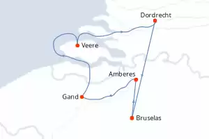 Itinerario : Amsterdam, Utrecht, Hellevoetsluis, Gand, Bruselas, Antwerp, Dordrecht, Amsterdam