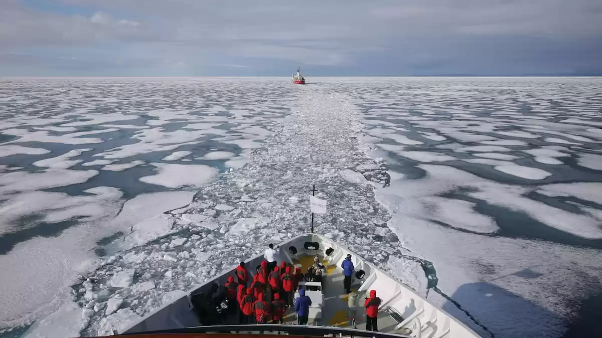 Antarctic Sound, apodado "Iceberg Alley", es una espectacular vía fluvial que bordea el extremo nororiental de la Península Antártica. Esta zona ofrece a los viajeros impresionantes vistas de enormes icebergs tabulares a la deriva en el océano, creando un paisaje marino de otro planeta. Los visitantes también pueden avistar una gran variedad de vida salvaje, como ruidosos pingüinos Adelia en la costa y focas tomando el sol en los témpanos de hielo. Los sonidos del hielo resquebrajándose y retumbando proporcionan una banda sonora memorable a esta excepcional experiencia polar.